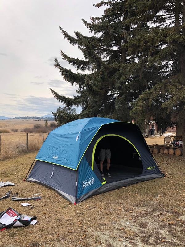 Coleman dark room skydome 6 person camping tent with a quick setup under 5 minutes the coleman dark room skydome 6 person camping tent lets you enjoy more time with friends and family on your next camping trip.